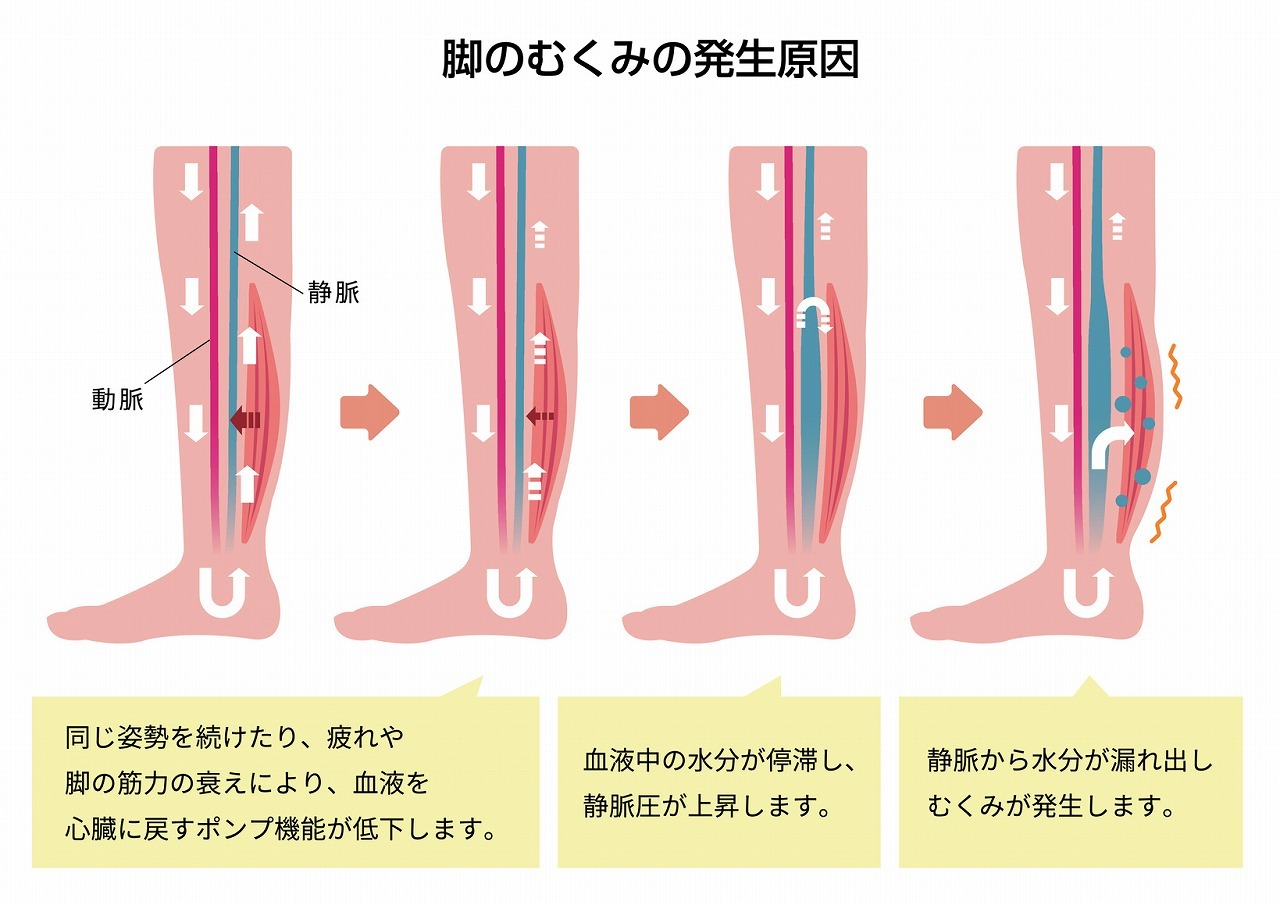 フットケアというと見た目だけの問題だと思ってしまいがちですが、重症化したむくみはいろいろな不調の原因になります。