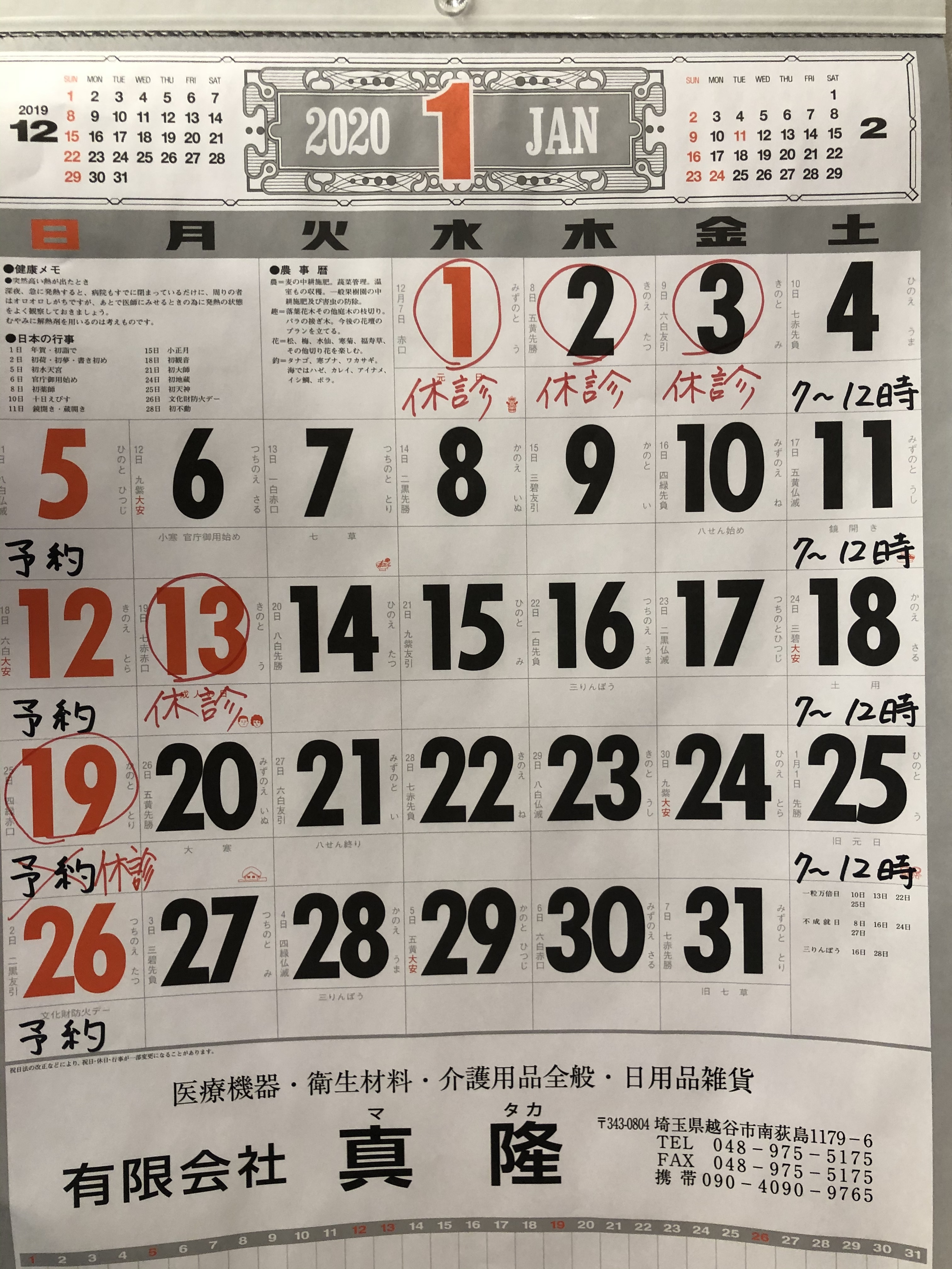 1月13日(祝)と1月19日(日)は休診とさせていただきます。