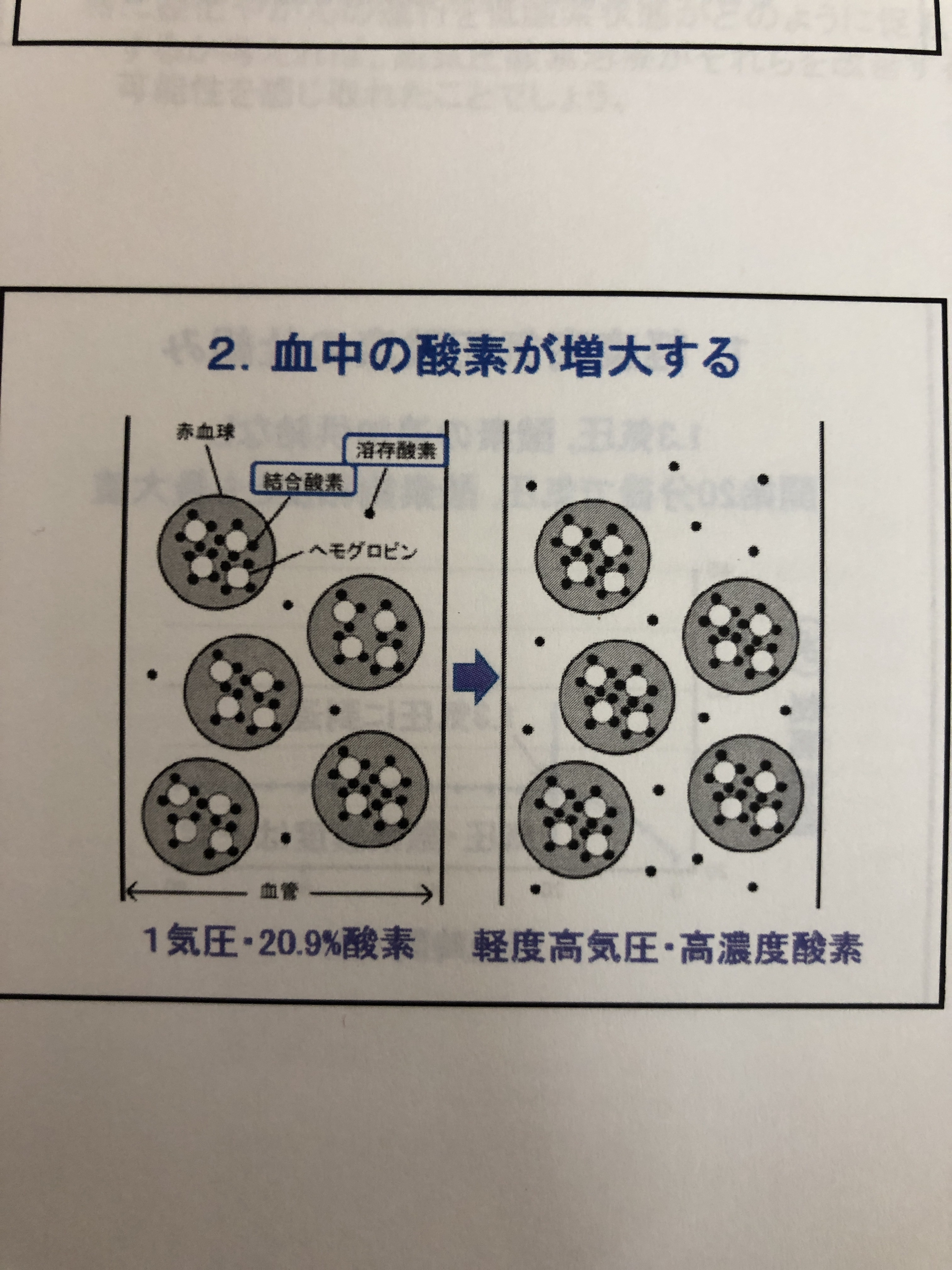 高気圧環境下では、粒子が4つくっつくので、酸素運搬濃度が2%ほど増加します。