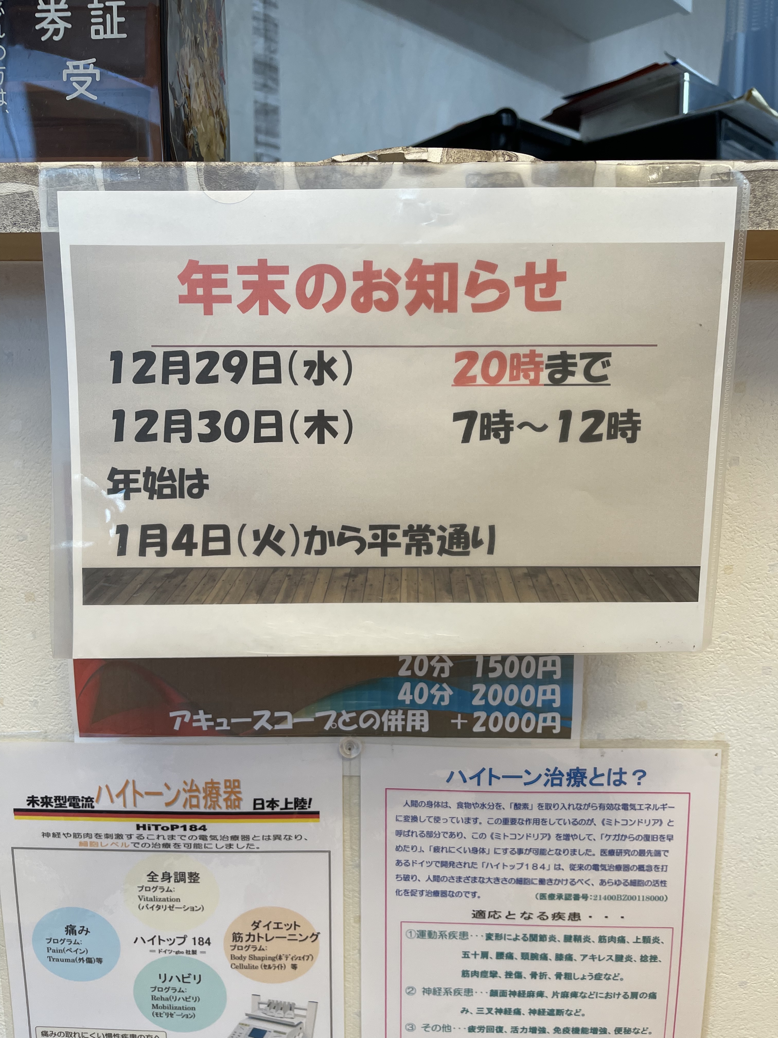 年始は1月4日(火)から平常通り受付しております。(火曜日は夜8時まで)