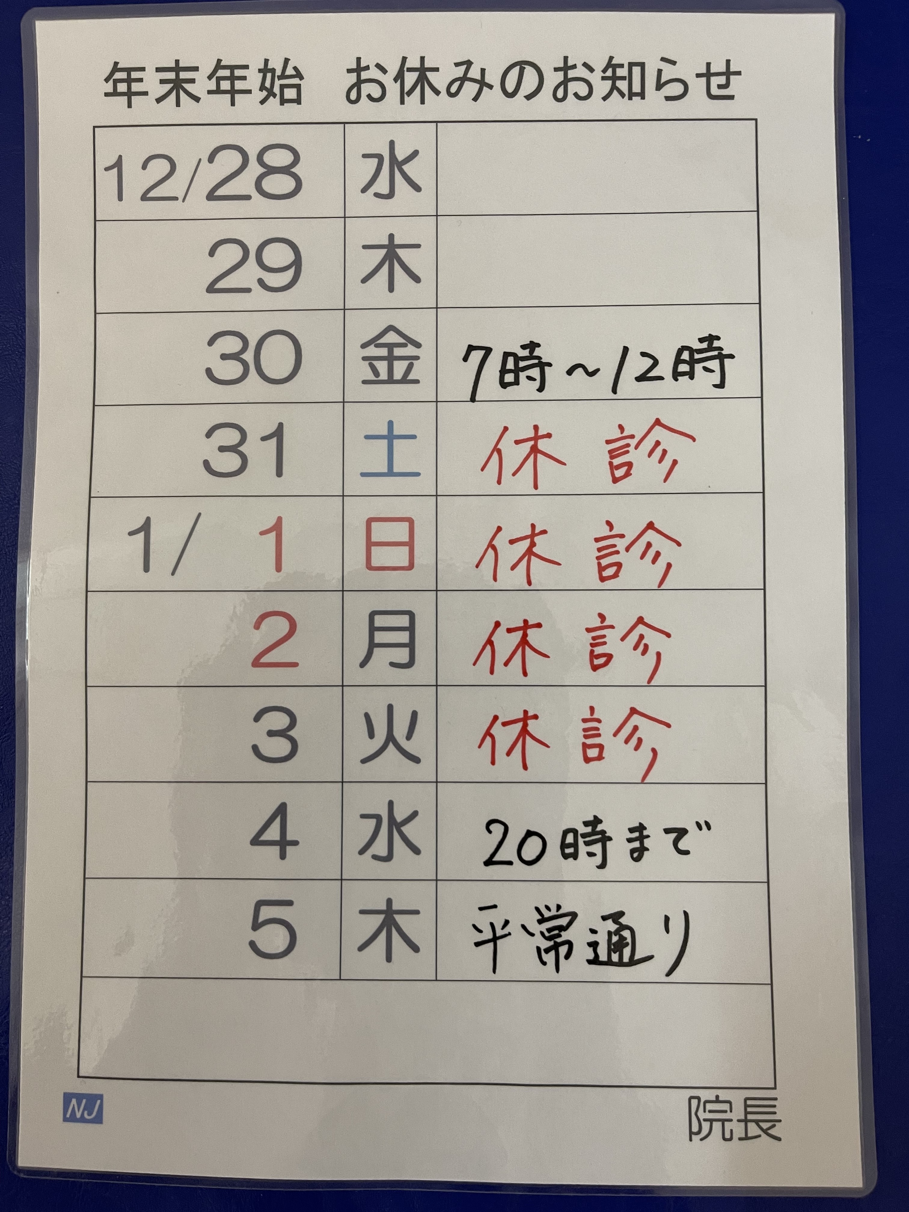 年末年始のお知らせです。