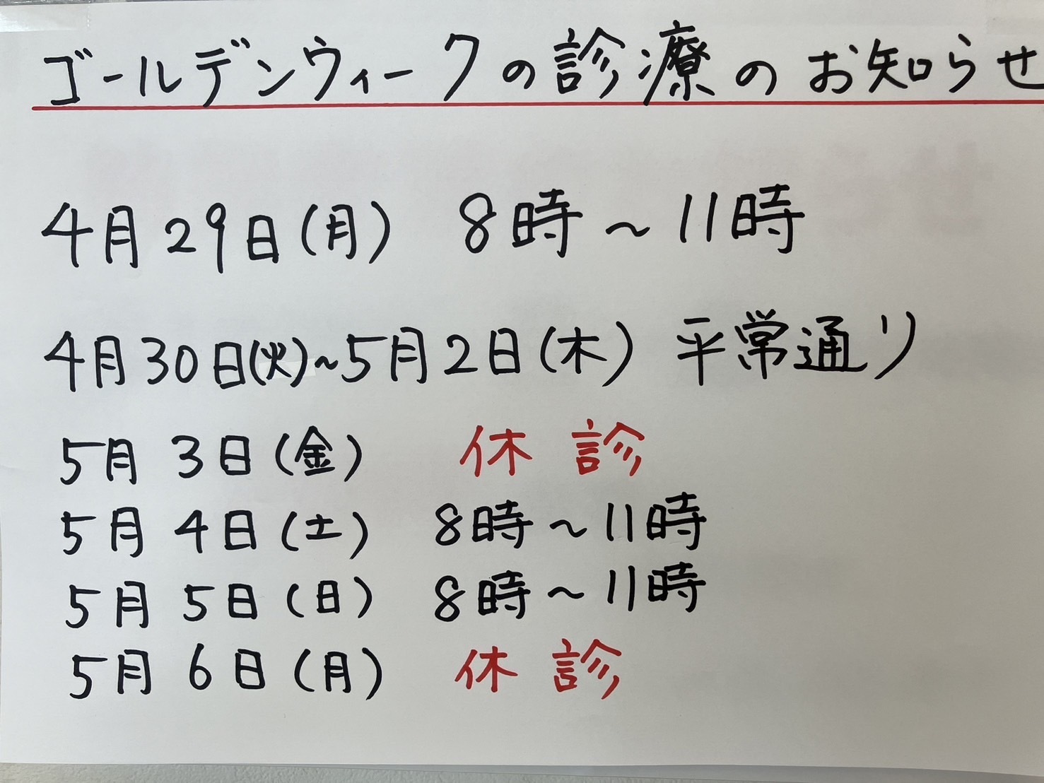 ゴールデンウィークのお知らせです。