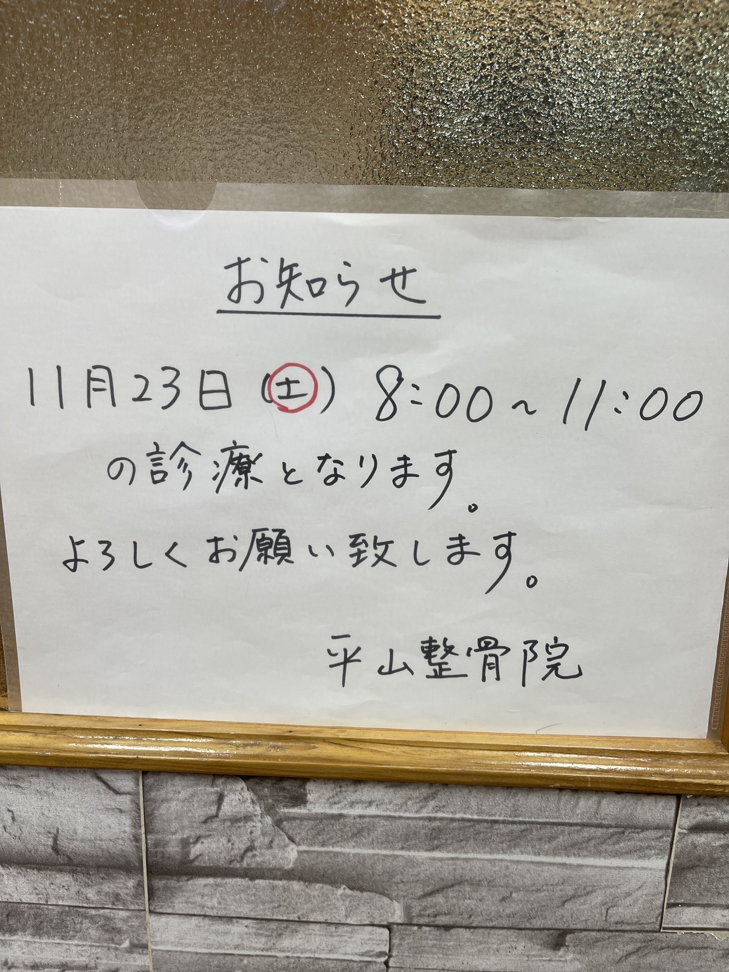 11月23日の土曜日は営業時間が8時〜11時となります。