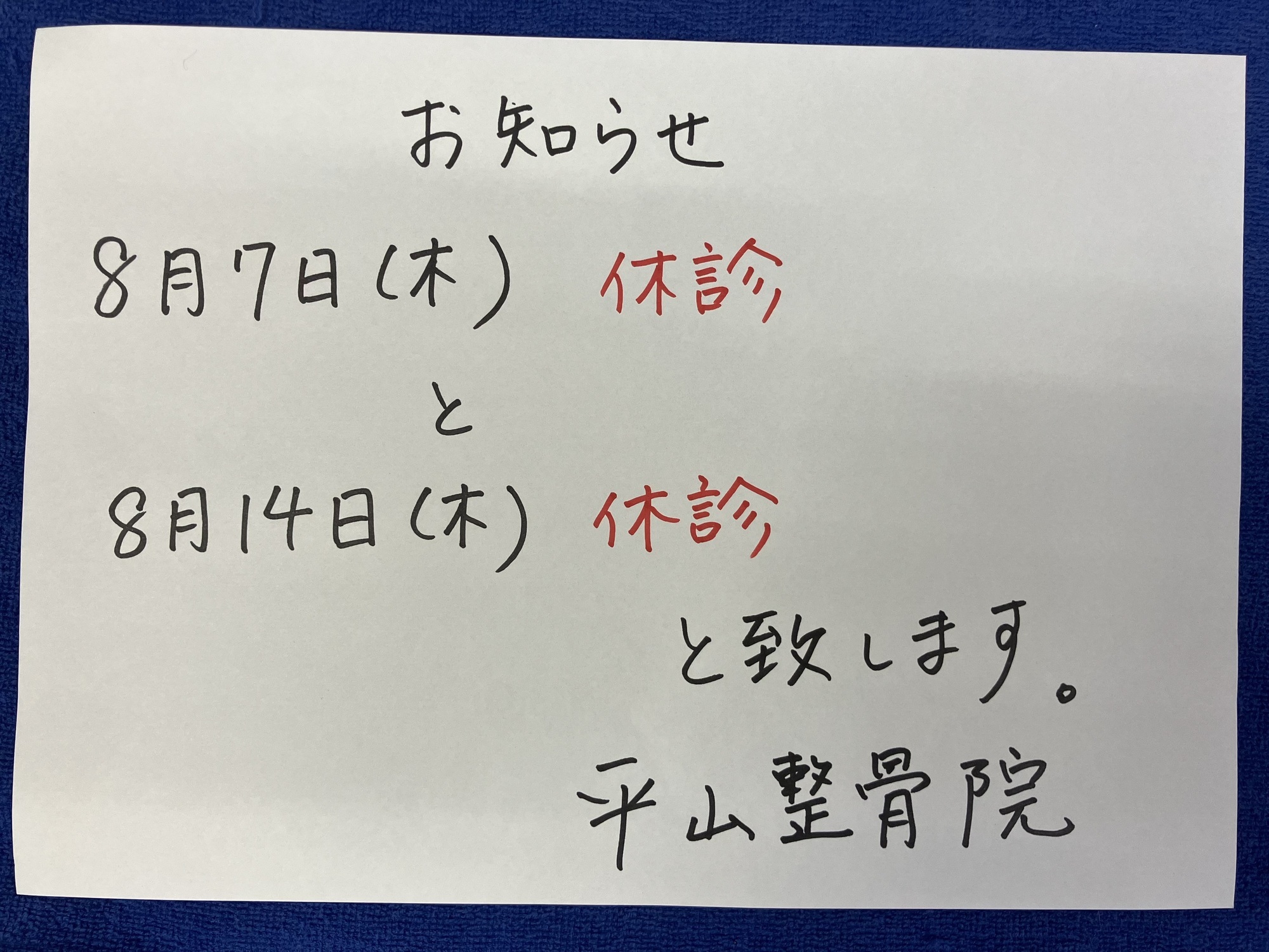 8月のお知らせ