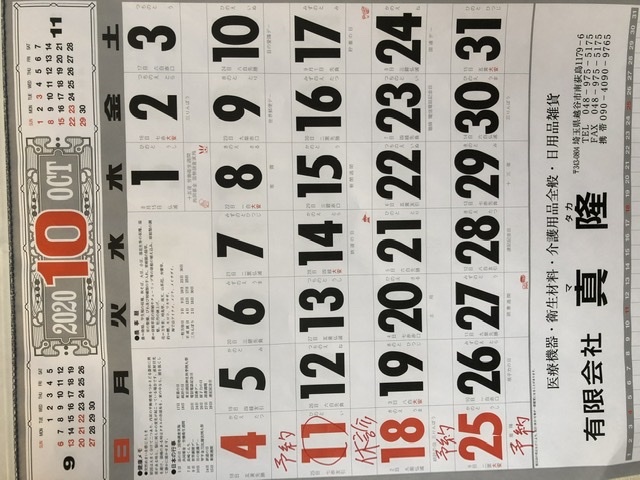 10月の予定表です!