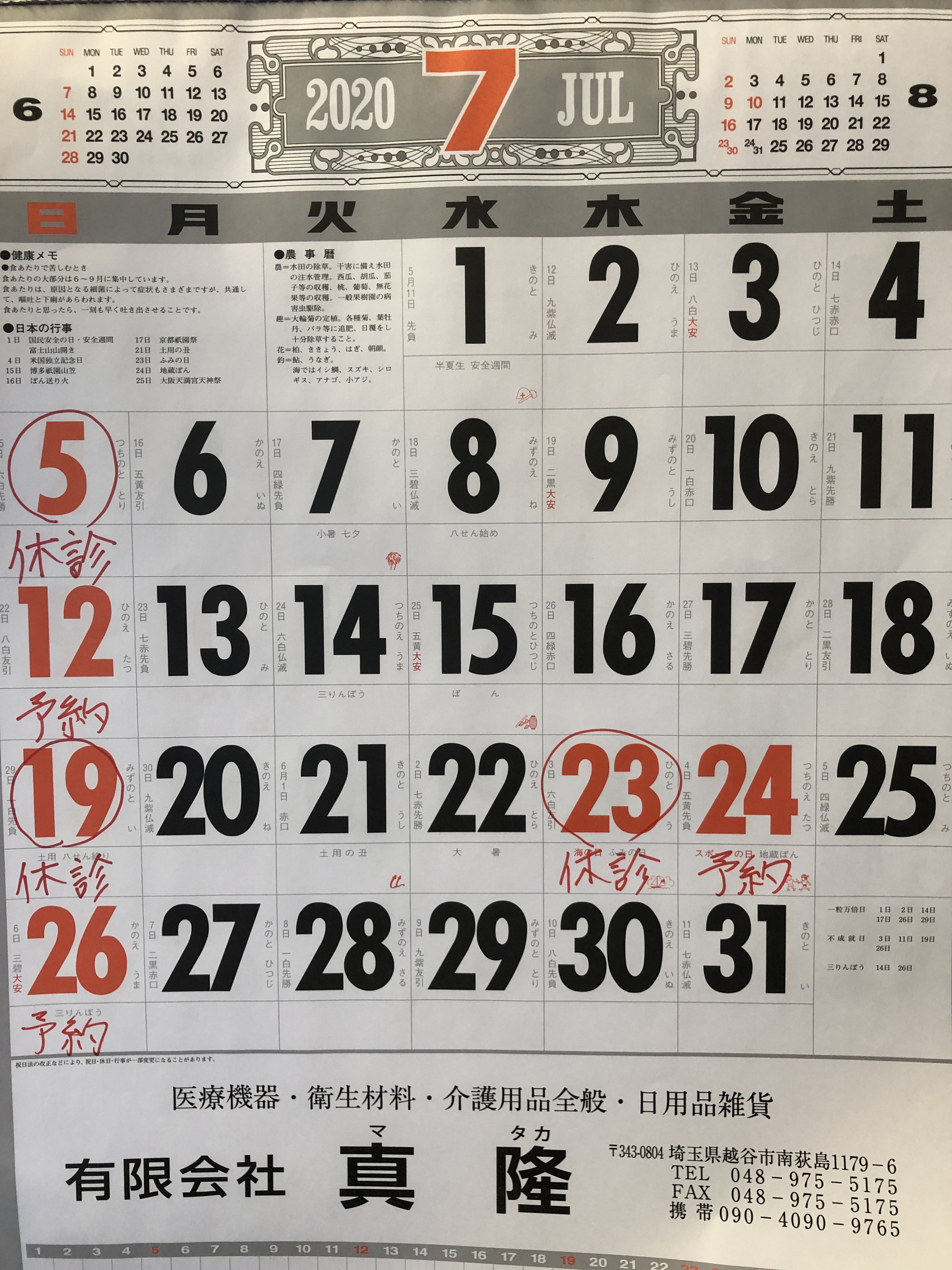 7月の予定表です!